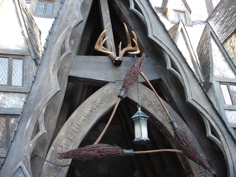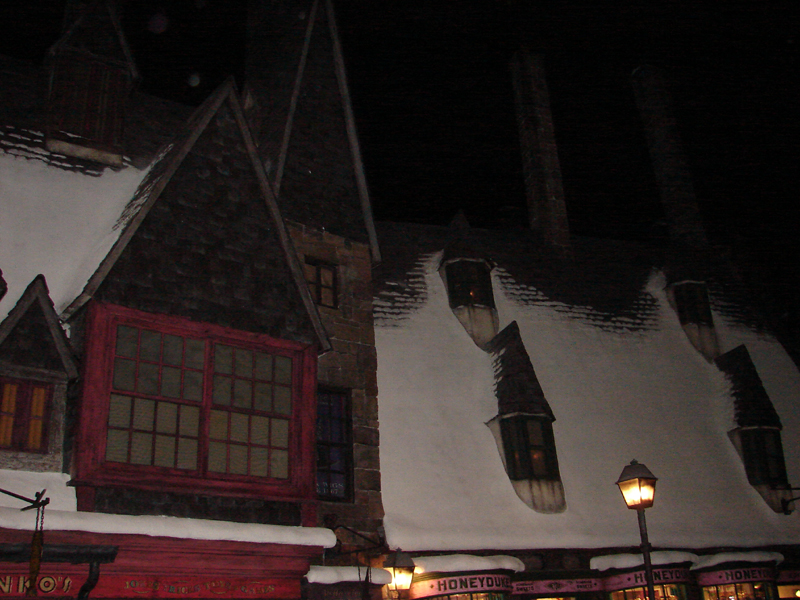 Then I crossed a bridge, and before I realized it, I was seeing the sign at the side entrance to Hogsmeade. First thing I did was jump into the Butterbeer line that only had about ten or twelve people in it, far less than had been during Open at the Close. I got my Butterbeer in souvenir mug for $10.50 and you know what? I didn’t like it. Butterbeer has a funny taste to it I can’t describe, but I don’t like. I drank most of it anyway just to say I’ve had Butterbeer.