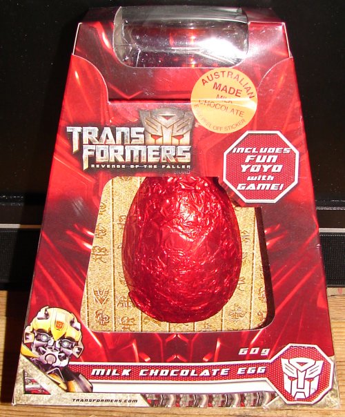 This is a 2009 Transformers: Revenge of the Fallen Chocolate Easter Egg with Yo-Yo. It was available in Australia and was manufactures by Park Avenue Foods. A very neat item. I haven’t seen another, but I’m sure they were probably common in Australia when they came out.