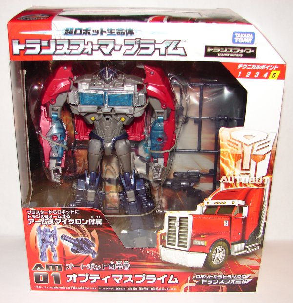 Box: The boxes for the Voyager toys are the same shape as the US versions. All the text and pictures are changed. Optimus Prime has more paint apps than any of the deluxe toys, which is likely the reason for using the window box.