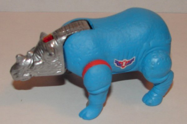 Rally Rhino is made from a Beast Wars McDonald’s Rhinox. He doesn’t stand up too well due to his small feet and large body. I like the blue, silver, orange, and black color scheme a lot. You can read Rally Rhino’s bio here.