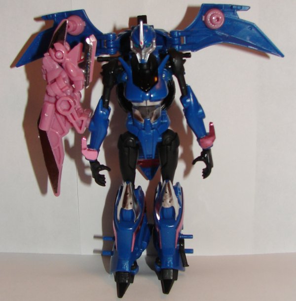 Robot Mode: Arc does not have a great robot mode. It would be better if the arms were able to fold down at her sides. Also could have used some stickers on her arms and legs.