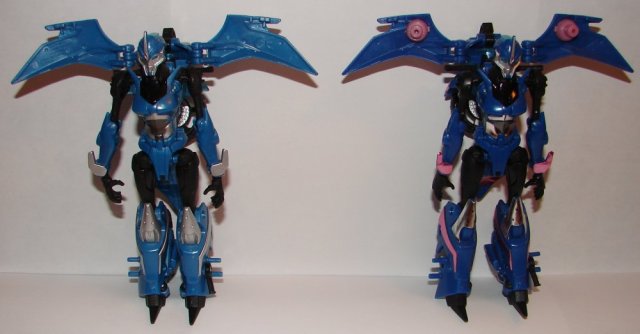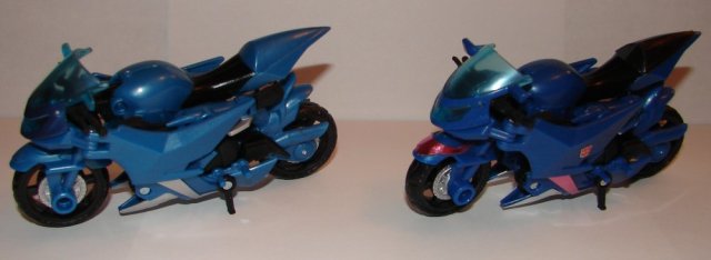 Overall: For most of the previous Japanese Prime toys, the weapons have been the only real reasons to get the Japanese versions. However, the Japanese Arcee is a significantly better toy than the USA version. It’s a darker blue, which looks great. While I do prefer painted details, the pink looks awesome on the blue, while the USA version is all silver details and has no painting on the front fender. Also, I didn’t notice this previously, but on the USA version, the rear view mirrors aren’t painted. They are left translucent blue, and look silly being unpainted. The Japanese one has them painted.