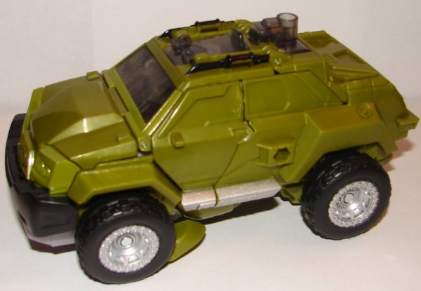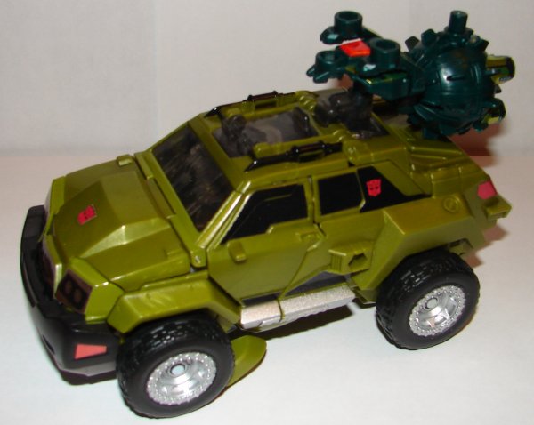 Vehicle Mode: In vehicle mode Bulkhead has new Arms Micron ports on his doors. His silver parts (running boards, hubcaps) are painted. I wish there was a good way to put the gun on the roof facing forward. It can be done, but you have to put the gun upside down and use the peg beneath the barrel.