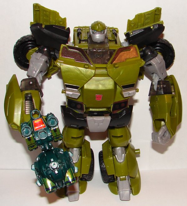 Robot Mode: In robot mode they have added two new Arms Micron pegs on the outside of Bulkhead’s ankles. I really don’t have much to comment on here. It’s still a vastly inferior toy to the Transformers Prime First Edition Voyager Bulkhead.