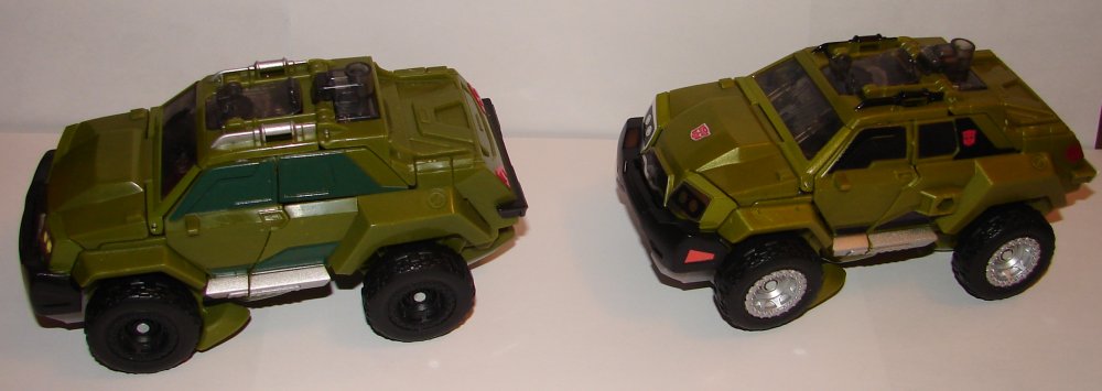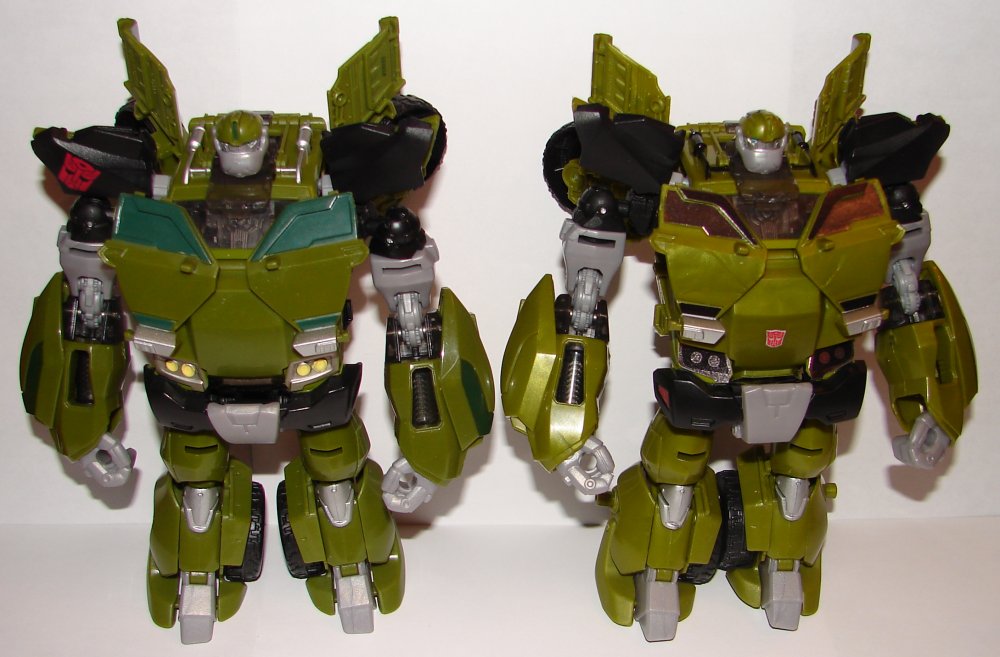 Overall: The Japanese version of this toy looks much better. The green plastic has a more metallic look to it. The stickers on the side windows are much more detailed than the simple green paint of the USA version. There can be no question that the Japanese Arms Micron is better than the awful gun on the USA version. The Japanese version has the hubcaps painted and stickers for the directionals, all of which is unpainted on the USA version. Definitely worth getting the Japanese version, but the First Edition Bulkhead is still vastly superior.