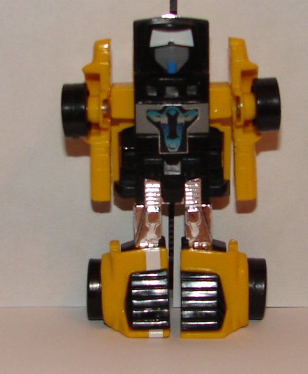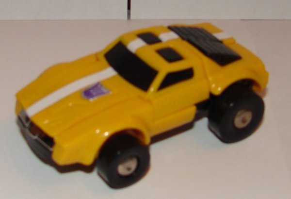 Sunbeam is a yellow, black, and white repaint of Generation One Mini-Car Windcharger. Windcharger is a straight repaint, no mold changes. The white stripe looks great on him.