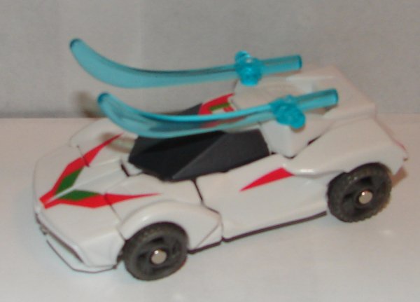 Wheeljack: I really like Wheeljack, but having his swords stored on the roof looks ridiculous. In robot mode, he is a little plain with his chest being all black, but it’s not too bad. Nice overall.