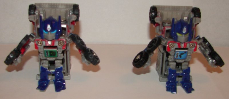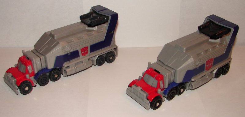 Optimus Prime’s repaint is hardly worth mentioning. All the back parts are now gray. That’s it. If they aren’t next to each other, you can’t tell which one you’re holding. They would have been better off doing a black trailer.