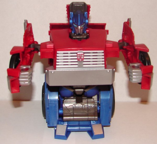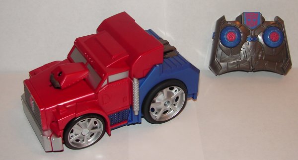 This is the definition of a crappy toy. This toy sucks. I was expecting a true remote control car, and it really isn’t. You need to have the remote pointed at the sensor on his front in car mode and on his back in robot mode. It’s crap. The non-transforming remote control cars from the RPMs line were much better.