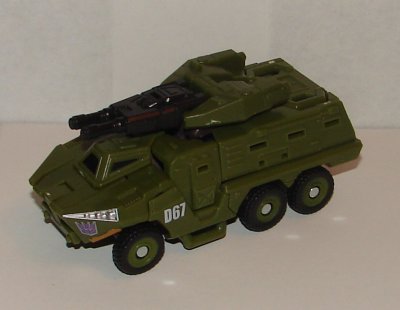 Robot Mode: I really like this robot mode, but he could have used some more color. I would have used a little bit lighter plastic, maybe red, along with the green, though gray would have been more G1 accurate. Very nice though.