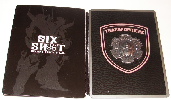 Lastly, Sixshot was packed with a sort of ID badge with a metal shield.