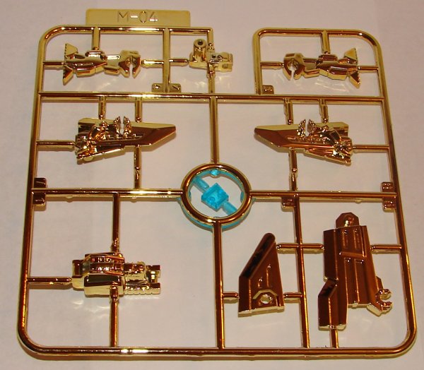 Kit: The kits are fairly easy to assemble, and so far the stickers seem to be staying on well. This kit is gold chrome coated. By putting the chrome on the plastic, it causes problems putting the kit together, because the chrome makes it slightly larger. It’s just a minute amount, but it is enough to create problems assembling the kit. You need to shave off the chrome on the inside of the hinges. This is very difficult, and it is very easy to damage the exposed chrome while doing it. Ss good as the final toy looks when assembled, I would have preferred it not to be chromed. Each Arms Micron includes something like a spark crystal, but I’m not sure if that is the intent of it. A sticker goes on before the outer translucent plastic to form it. They look nice, but I had some problems getting the crystal to stay in on some of them. Might need a little glue.