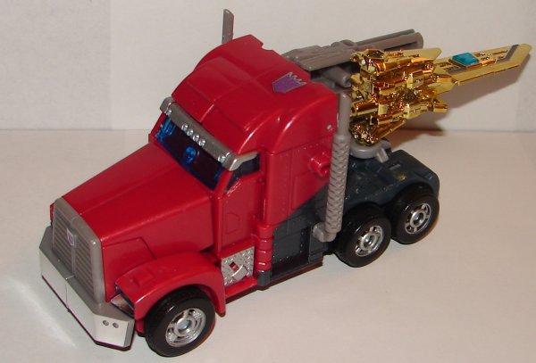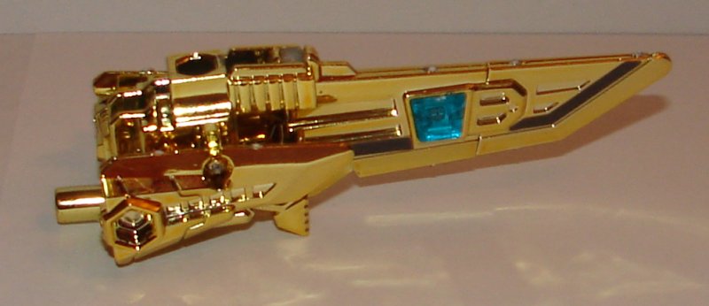 Weapon Mode: The sword looks awesome in gold chrome, but I still wish the side blades would fold down into a hilt. No question this is the best looking version of this toy.