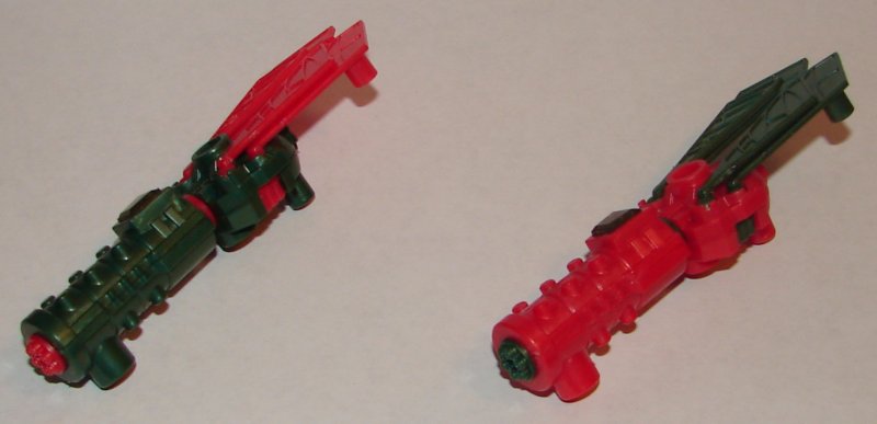 The third series of Japanese Transformers Prime Arms Microns Capsule toys are out. The full set includes 5 toys, Ratchet, Wheeljack, Starscream, and two color variations of a dragonfly named Dobo (not to be confused with Dabo, a popular game played in Quark’s bar on Deep Space Nine). They come fully assembled and in lieu of stickers have painted details (on Ratchet, Wheeljack, and Starscream). This entire series is a bit of a let down after the first two series. Ratchet and Wheeljack look really great in robot mode, but their weapon modes are a spanner and a sword (I saw it called a Kunai online) and aren’t that great. Starscream’s robot mode is okay, but his boomerang mode isn’t. It doesn’t transform very well. The dragonfly, Dobo, is kind of cool. He comes in red/green and green/red and turns into a gatling gun.