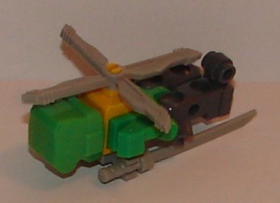 Springer’s robot mode suffers from a typical Micro-Changer problem where a part covers the art on his torso. It really is mystifying that Hasbro couldn’t mold a piece that had nothing on the front and the peg for the rotors on the back. A few toys are done that way. If they couldn’t do that, then at least do that part in clear plastic and don’t put the extra part on his chest. Most of these guys have extra parts in at least one if not both modes, so it’s not like having another extra part would have been a big problem.