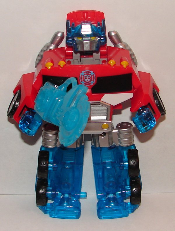 They did a nice job on the original Rescue Bots Optimus Prime toy. Basing the Optimus Prime design on G1 came out really great. The Energize version has translucent blue fits and legs. He looks nice, but I would have preferred ports for the saw to be on the cab roof.