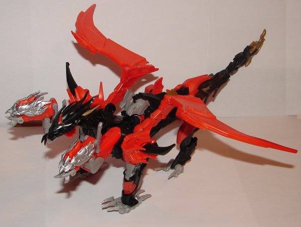 Vehicle Mode: Predaking is a three headed dragon (though the Cyberverse Legion toy has just one head). The two side heads double as missile launchers. They are also removable, making him a one headed dragon. Perhaps that makes it easier for him to change him mind…get it? 🙂 Anyway… He really looks nice, and I love the coloring. He does feel rather small. I would love to see him in Weaponizer scale, but considering what his wingspan would need to be, I don’t think that’s likely.