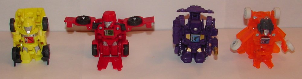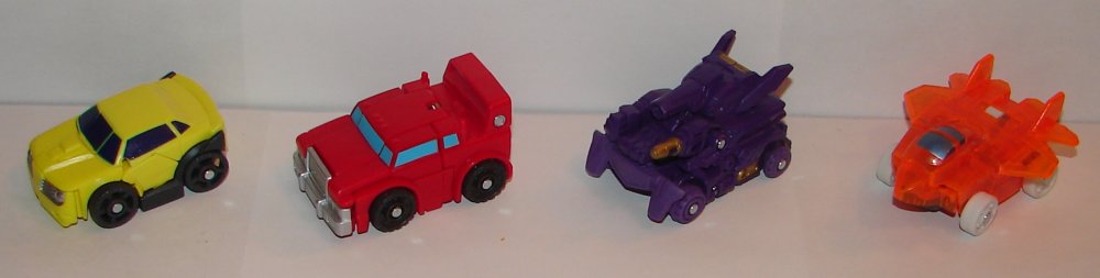 Jump Shots: You knew Hasbro had to have a dud eventually. I have yet to make a Jump Shot land on it’s feet. The design is simple. The robot body on the bottom of the vehicle is spring loaded. It snaps down onto the surface, forcing the whole toy up and onto it’s feet (though it doesn’t actually end up on it’s feet). Admittedly, I only tested in a half dozen times, but it really shouldn’t be so hard to make it work correctly. However, of all of them, I think the Jump Shots have the best looking robot modes.