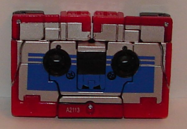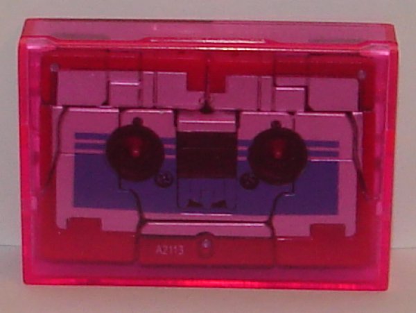 Oddly he (and Rumble) comes with a pink cassette case. Not sure why as all G1 cassettes came with clear cases as far as I know, but that hardly matters. (And for anyone out there not old enough to remember what a cassette is, think of it as a low quality rectangular thick CD.)