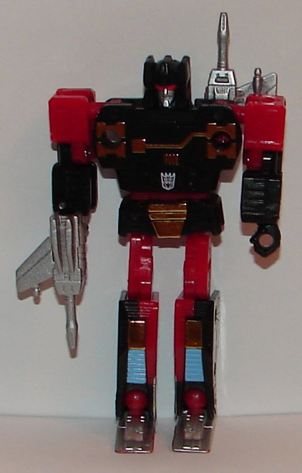 Rumble, shown above in tape mode and in robot mode with his customary weapons, is absolutely amazing. They really did an awesome job on him (accept that he should be Frenzy).