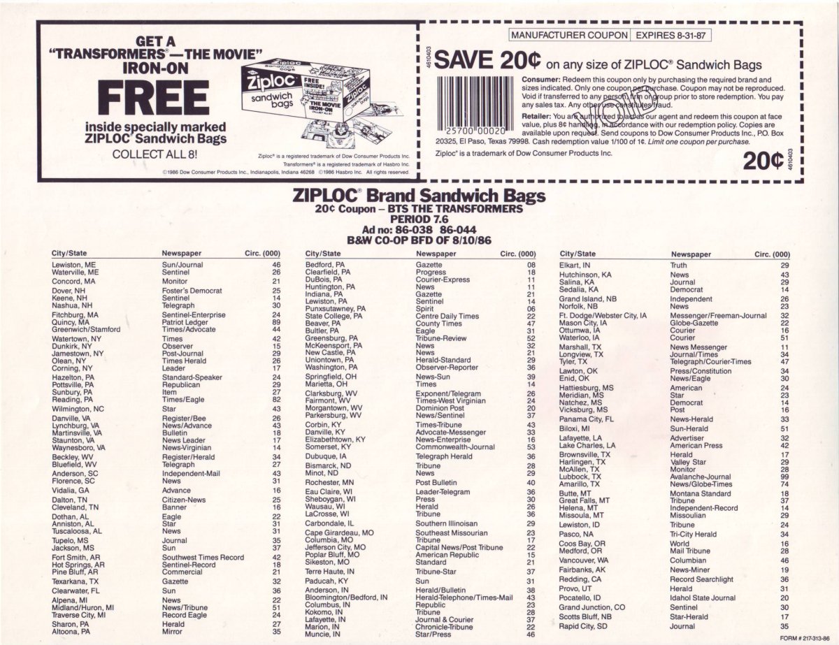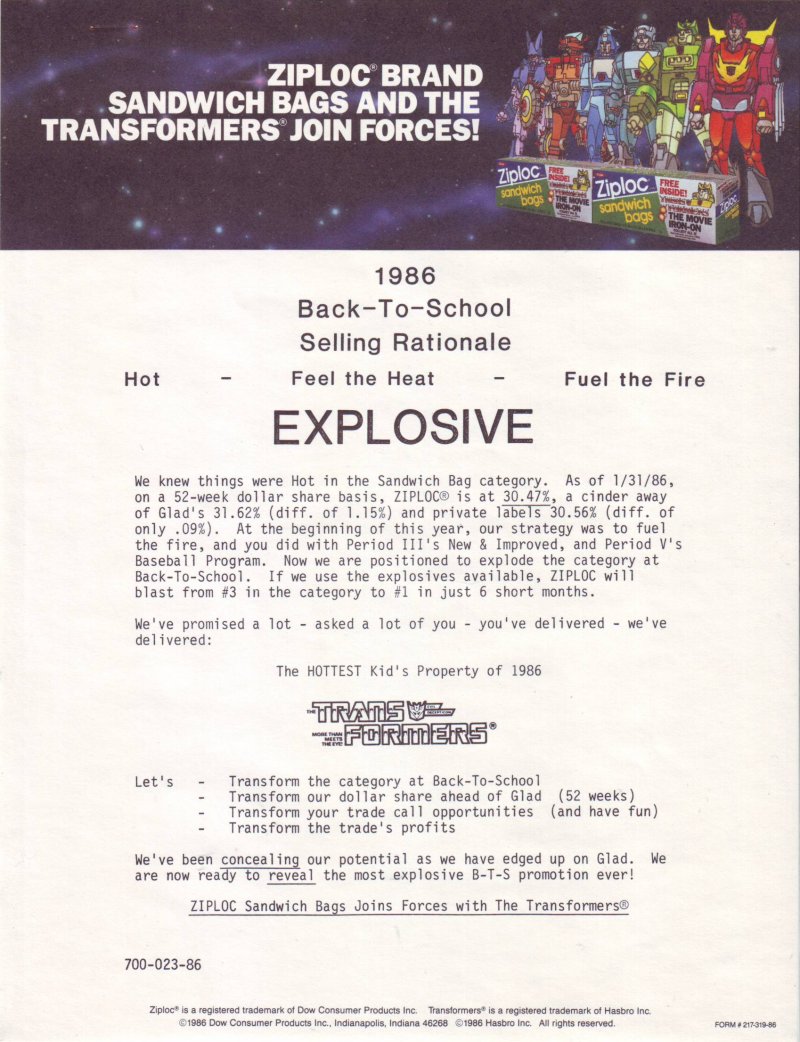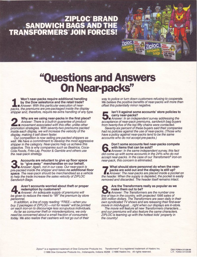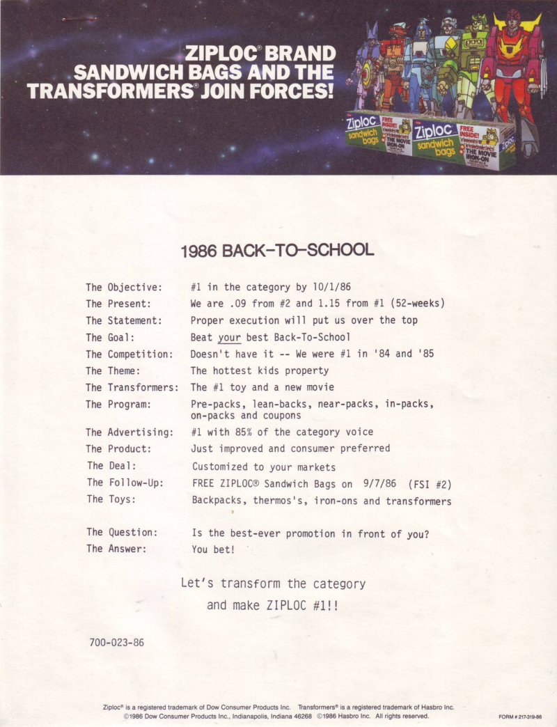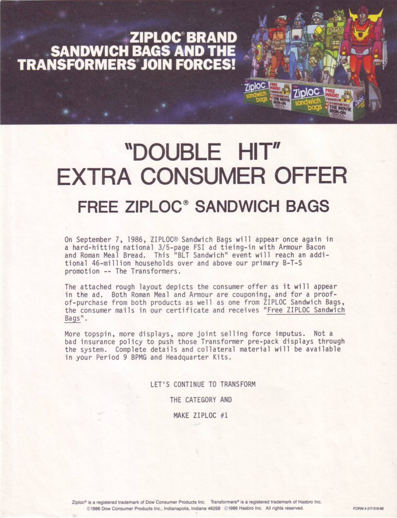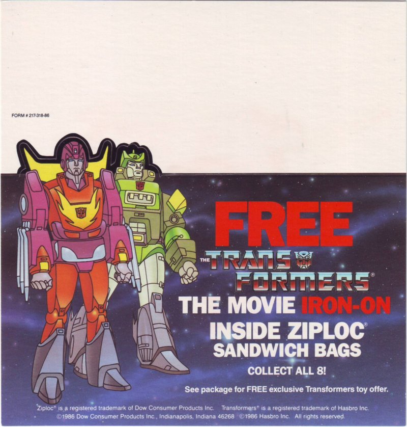 Pingback: Blog #868: Transformers Artifact of the Week: 1986 Transformers The Movie Ziploc Promotion Sandwich Bags Sealed Box | lmb3.net