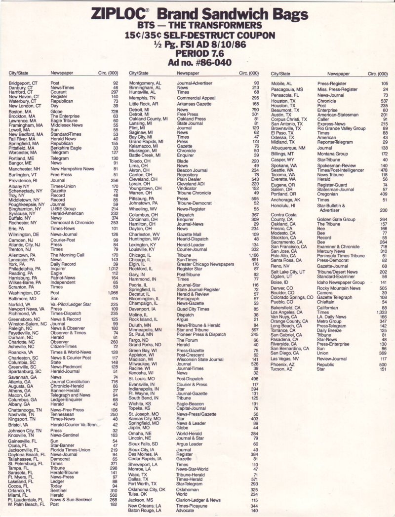This is interesting. It’s an example of a coupon and a list of all the newspapers where it would be distributed.