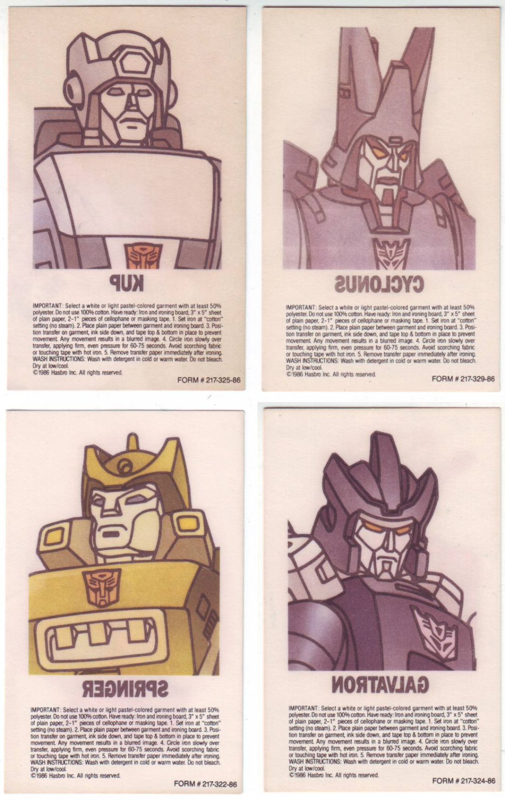 Well, that’s about it. I really wish I knew how rare this is. For all I know there are plenty of them floating around, but I’ve never seen another. If you have any more information on this kit please contact me. I’m also looking for the thermos from the kits as well as an original Transformers Ziploc bag box and the Galvatron, Cyclonus, Kup and Springer Iron-ons. If you have any of these items for sale, please contact me.