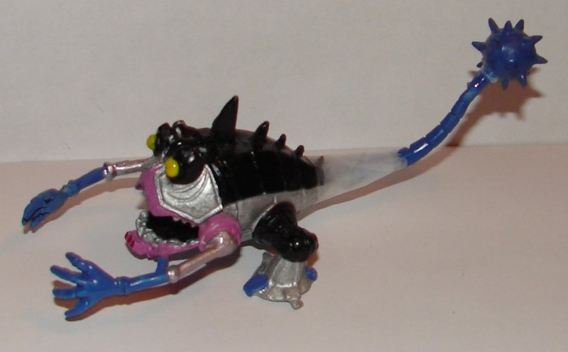 In 2011 it was announced that third party Transformers toy maker Dr. Wu was making a non-transforming Sharkticon (I’ve seen it called both Shark Clone and Sharkticlone). Due to how delicate it was, it was never released. I’m unclear how many prototypes were made, but I don’t believe it was very many. As you can see in the picture, this one is broken. The tail broke off in such a way that I couldn’t get it glued back on, so I had to put tape on it. It’s also broken at the end of the tail where the mace is, but the glue held on that.