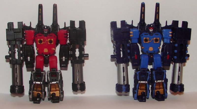 Like the original G1 toys, they can hold their weapons or store them on their back. These seem to have come down quite a bit in price, I paid $45 for the pair, and I thought they were that each when they came out (though I could be wrong). Not sure if I got a great deal, or if the release of Masterpiece Frenzy and Rumble has driven down the price.