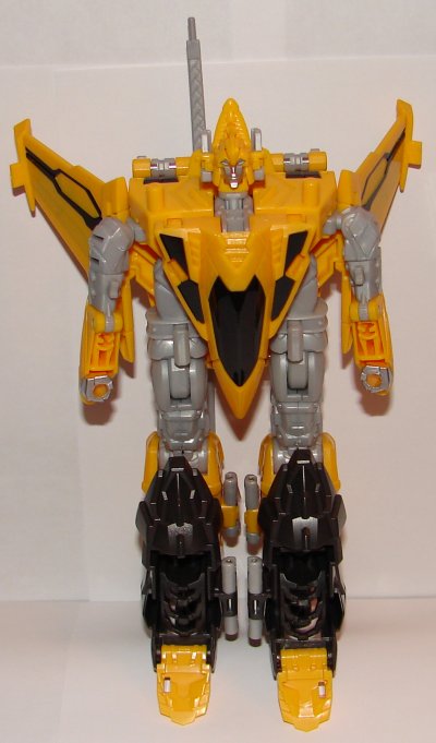 Combined Mode: While Jinbu’s robot mode has too little torso, his combined mode has a torso that is way too tall, with really thin short thighs, thick lower legs, and tiny feet. Bizarre is the only way I can describe him.