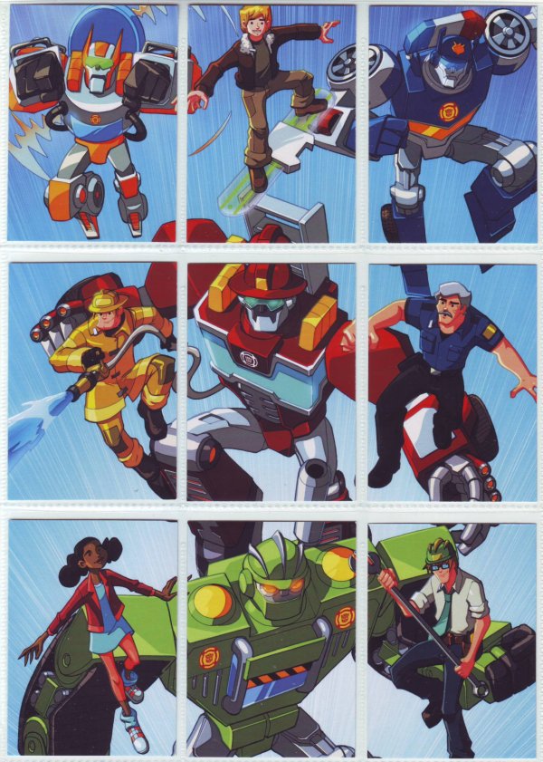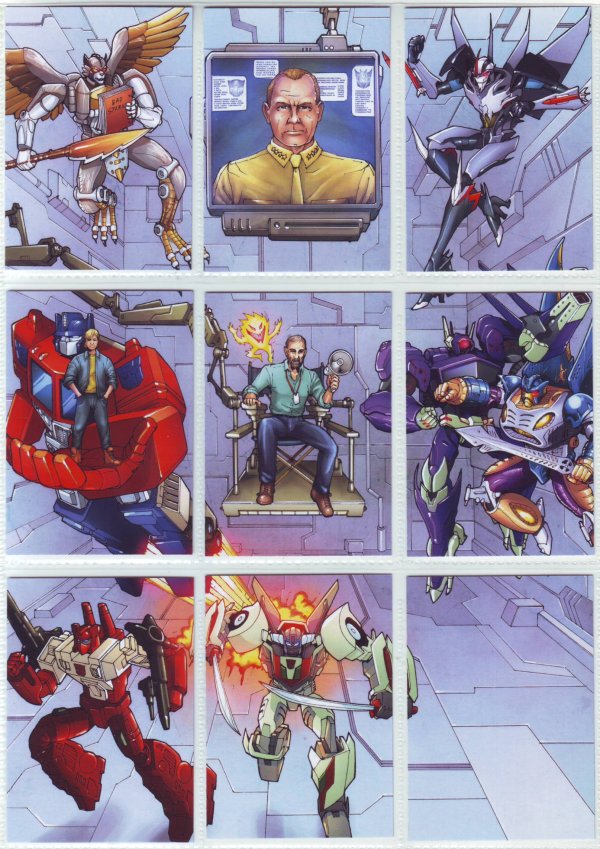 I’ve really liked the autograph cards in the past, but I wasn’t thrilled with them this year. I much prefer cards with borders to the full bleed, and the puzzles never look very good since the card sheets keep them too far apart. Having said that, the art is pretty great. The four chase cards use the Machine Wars art that I don’t like, so that was a let down. I also got the uncut sheet of regular cards.