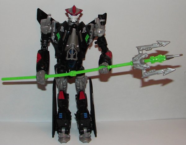 The Terradive mold was great for Starscream. His head has just enough similarity to Machine Wars Starscream to work, and they did a great job painting it. The only problem is that the green plastic they used on his trident is too soft, causing you to be unable to lock the trident in the open position.