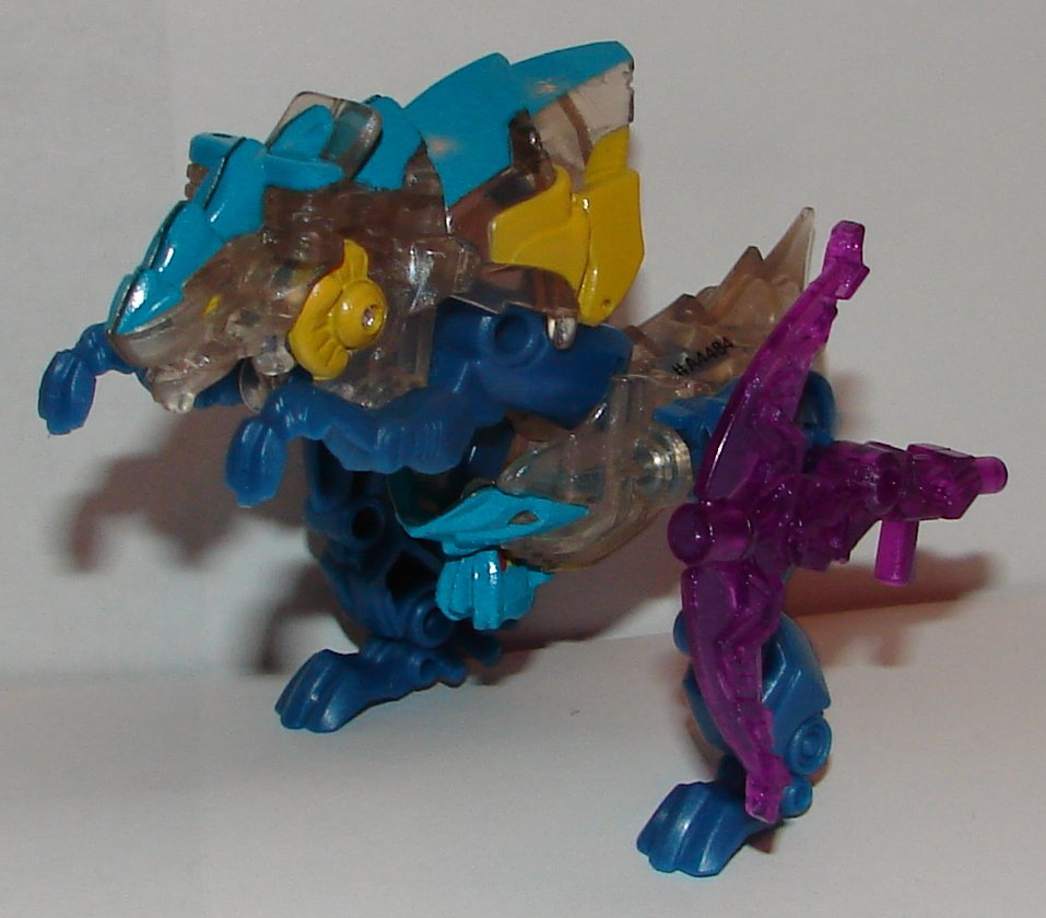 The colors on these guys are fantastic. They look much better than the regular versions in my opinion. I am so glad they did these guys in translucent plastic, I love translucent toys. I haven’t much more to say about them, accept that they did put in the instructions how his weapon is supposed to fit together. It is a staff or hammer, not entirely sure. He can’t really hold it very well, but then Abominus isn’t that great anyway. These guys are far better individually.