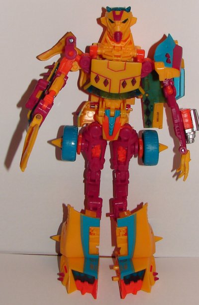 Unfortunately, they put so much effort into making the car look perfect, they must not have been paying attention to how hideous the robot looks. I mean, this thing is dog ass ugly, and this is coming from someone who loves gaudy G2 toys. It doesn’t help that I’ve never really liked the mold, but at least it worked in Lockdown’s colors. The new head mold is not bad, but I have nothing else nice to say about the robot. Do yourself a favor. If you’re getting this toy, leave it in vehicle mode and admire how awesome it looks. Don’t ruin it by transforming it into that horrible thing.