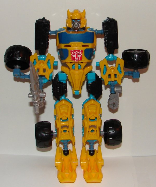 Bumblebee, like most car Constructbots, isn’t great in vehicle mode. He’s not awful, but nothing special. I do like his robot mode. Not sure I like the head sculpt though. The helmet is fine, but the face just doesn’t look like Bumblebee. The yellow and blue look really nice, but I kind of would have preferred they use yellow and black.
