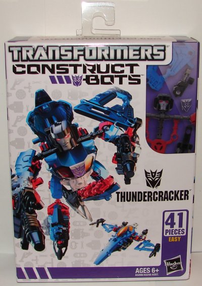 Since Constructbots parts are easily interchangeable, they elected not to make Thundercracker a straight repaint of Starscream. I really like the jet mode. Overall the jets have been much better than the land vehicles. I think this type of toy just lends itself better to a winged vehicle than a wheeled one. I really like the classic Thundercracker colors (accept the black of course). Looks really nice.