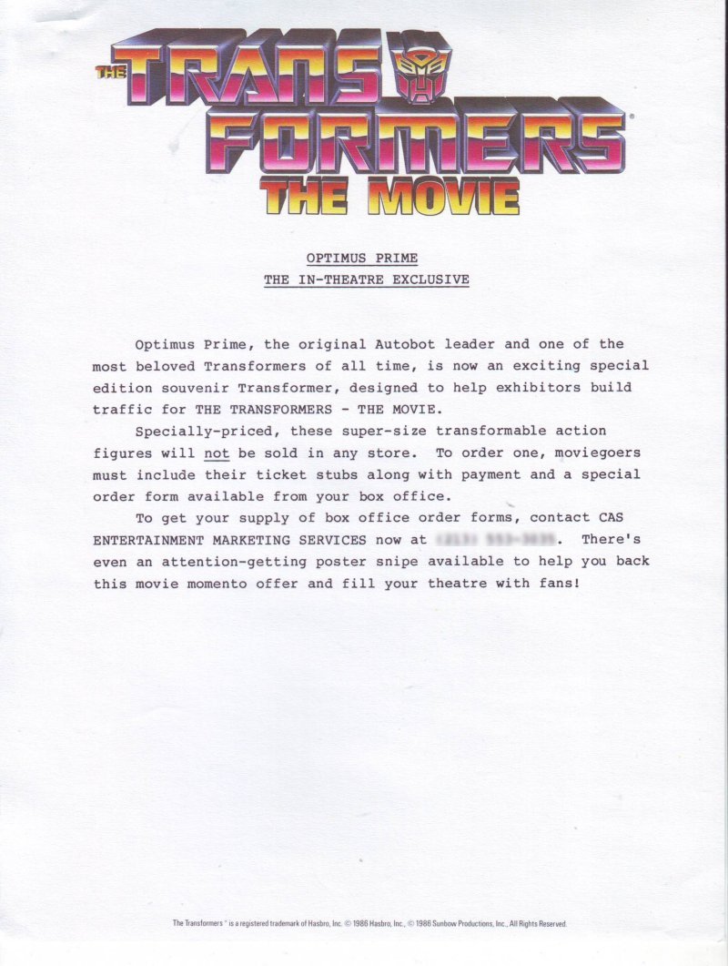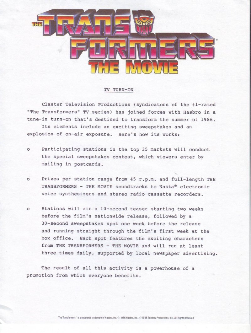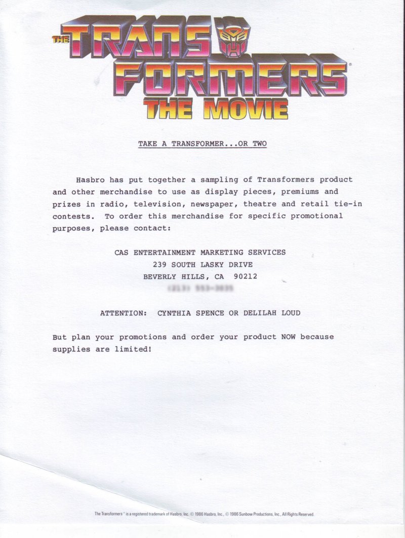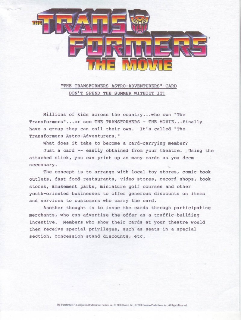 This was a suggested promotion to have a Transformers: The Movie day with a local theme or amusement park.