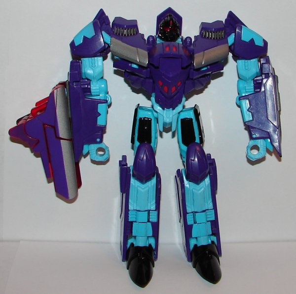 Robot Mode: He looks great in robot mode. I love the new head sculpt. The teal and purple look great together.