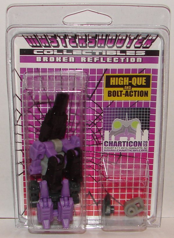 MasterShooter’s latest in their line of awesome Targetmaster weapons are Broken Reflection High-Que and Bolt-Action. Obviously these are meant to be for Botcon Shattered Glass Optimus Prime and Rodimus. Hi-Q was Optimus Prime’s Powermaster partner, but I think making him a Targetmaster is cool since Powermaster partners were kind of lame, though they came with awesome toys. Here is my review of the molds.
