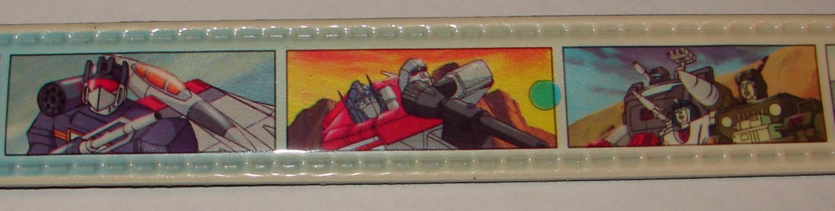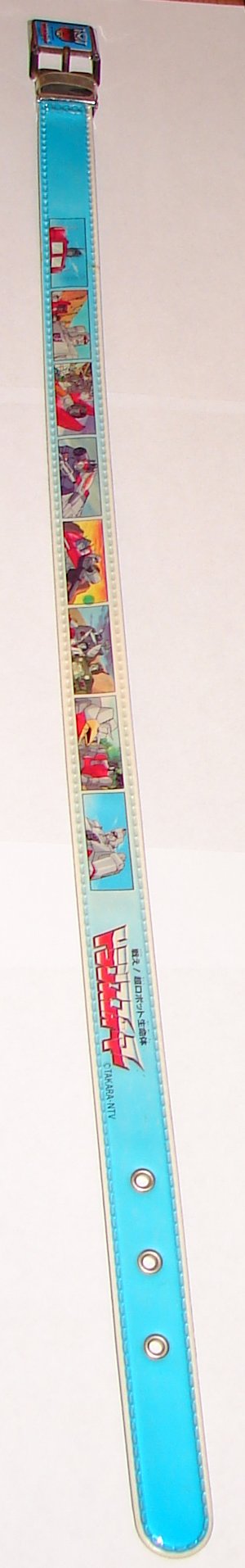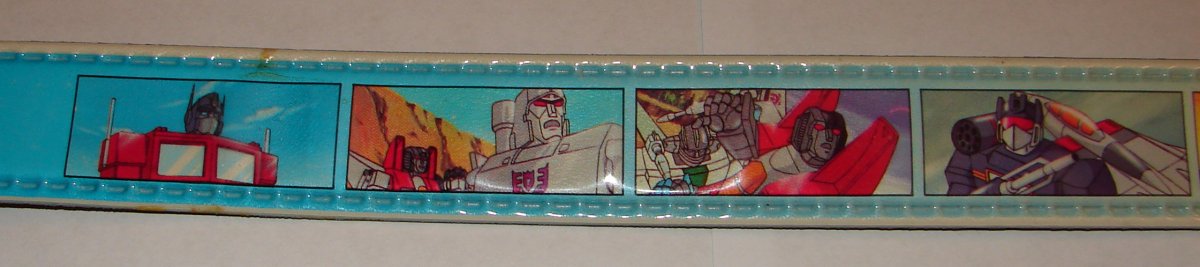 The belt buckle has the Autobot logo and Transformers written in Japanese. It’s covered with various scenes from the G1 cartoon. I’ve never seen another one (but then I don’t live in Japan).