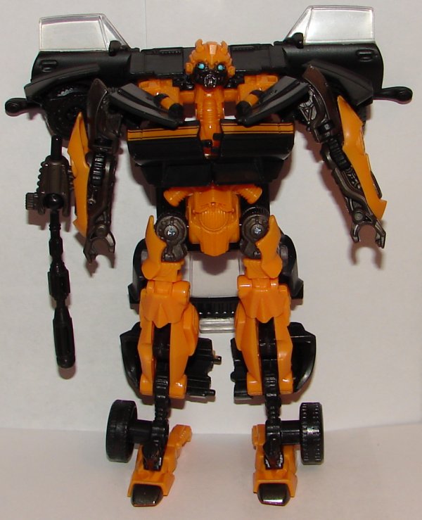 Robot Mode: I’m not a huge fan of his robot mode. His chest just doesn’t look right, like his head is sitting on a pole. Colors look nice and I like the head sculpt. His transformation is complex without making him a puzzle-former. Kind of nice to transform a Bumblebee toy without letting loose a string of swears.