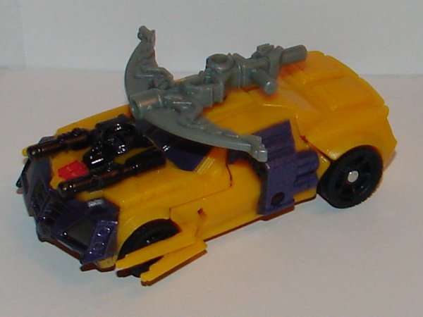 The mold seems unchanged from the original Energon Driller toy, accept for the removal of all the electronics, which is really stupid. He comes with a couple of extra small weapons. I do like the new paint job. Bumblebee is a slight repaint of the Beast Hunters Cyberverse Legion Bumblebee.
