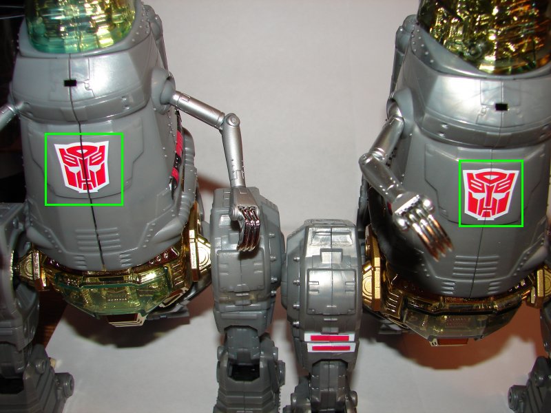 Lastly, it doesn’t photograph very well, but the Autobot logo on the newer one is slightly darker than the original version.