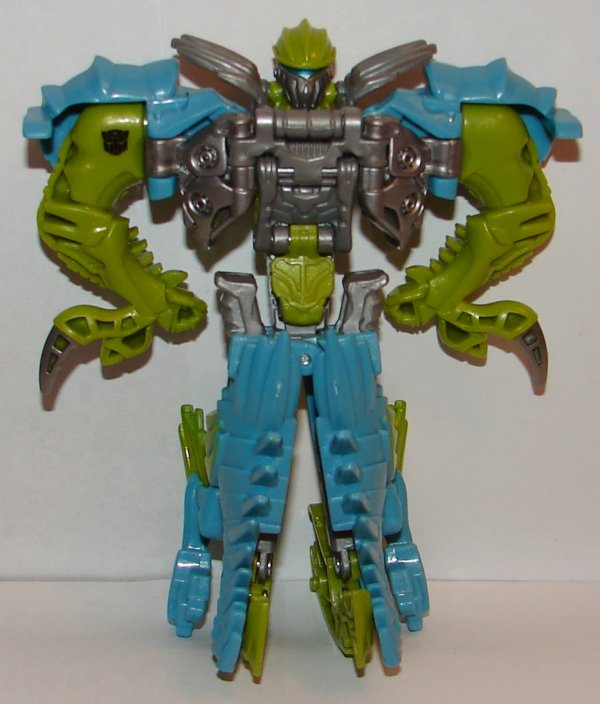 Slash folds into robot mode just like Grimlock. I think his robot mode looks a bit better than Grimlock though. I think his overall color scheme make it look better.