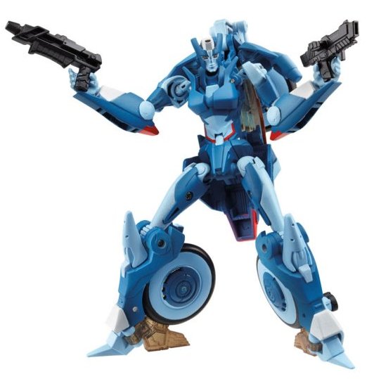 All we got for Masterpiece announcements was that Sideswipe and Bluestreak will be released in the USA (I presume through Toys R Us.) I don’t think pics or toys were shown of these, but I assume we will get the black and gray version of Bluestreak, though Hasbro has generally stuck to the toy coloring for Masterpiece (Soundwave’s yellow eyes), so it could be the silver one.
