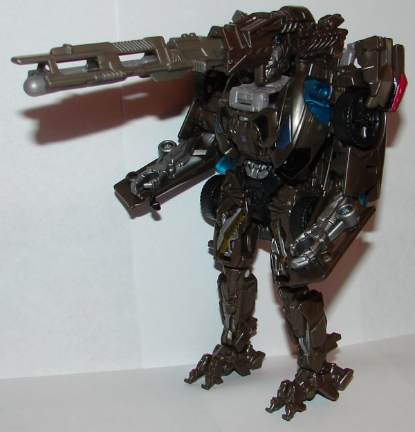 Robot Mode: I like the head sculpt, but I wish they had painted his eyes. The box art has them as bright green. Not sure if that was the color from the movie, it’s been a while since I last saw it. Whatever the color, I would have liked to see them painted. Otherwise his robot mode is great. My only complaint is the design of his gun when he uses it on his head. You can still see his robot head underneath. It would have looked better if the gun had a hood that fit over his head so you couldn’t still see it.