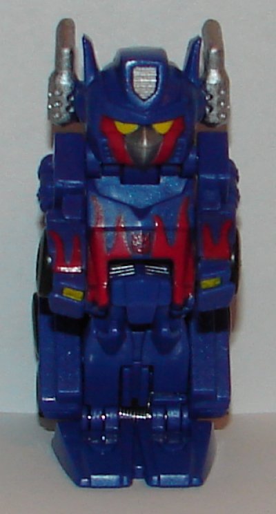 All of the Telepod toys have the same basic design. They are supposed to auto transform to robot when you press their head, but none of them really work. You kind of have to fight with them a bit to get them in robot mode.