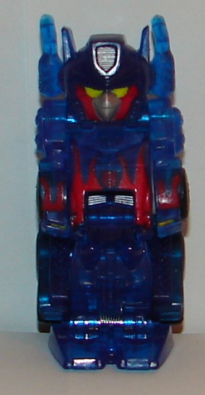 Lockdown, Optimus Prime, and Soundwave are repaints in translucent colors. This is the first we’ve seen of Grimlock and Starscream. Grimlock is pretty cool, though the long beak is pretty odd looking. I really like Starscream, though I wish he had better wings, the little short ones look silly, but he can’t have extending wings or he wouldn’t work with the raceway. While I am fine if this line gets canceled, I would like to see a non translucent Grimlock and Starscream as well as Thundercracker and Skywarp.