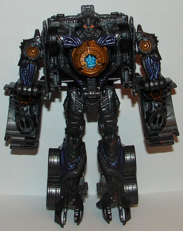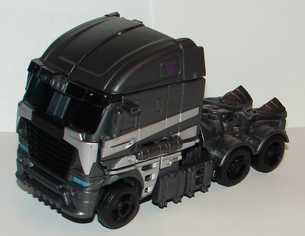 I really like Megatron in both modes. He has a couple of little issues. In truck mode the front panel doesn’t quite latch on properly. Also, the gold disk in his chest sticks out the bottom of the vehicle. It just barely touches the ground when he’s set on his wheels, but it should have had more clearance. In robot mode, you push on his back and the disc spins and extends into a gun.