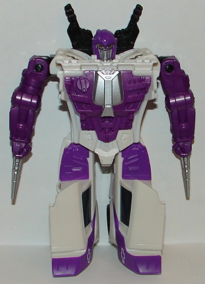 Prowl uses the One Step Changer Drift design, which is the best of all One Step Changer transformations. He looks pretty cool, though the light bar they gave him is a little odd. Never seen one like that. I really like his head sculpt.